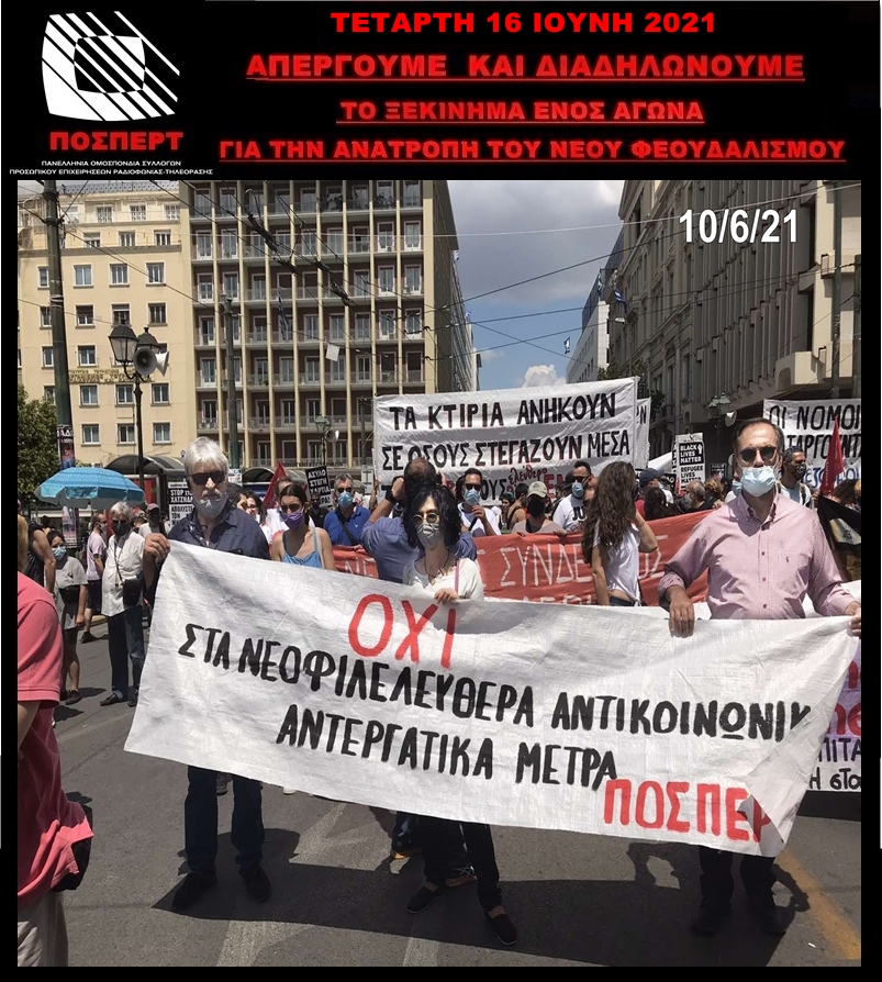 ΠΟΣΠΕΡΤ:ΟΧΙ ΣΤΟ ΕΡΓΑΤΟΚΤΟΝΟ ΝΟΜΟΣΧΕΔΙΟ ΜΗΤΣΟΤΑΚΗ- ΣΕΒ / 24ΩΡΗ ΑΠΕΡΓΙΑ ΚΑΙ ΜΑΖΙΚΗ ΣΥΜΜΕΤΟΧΗ ΣΤΑ ΣΥΛΛΑΛΗΤΗΡΙΑ ΤΗΝ ΤΕΤΑΡΤΗ 16/6/2021